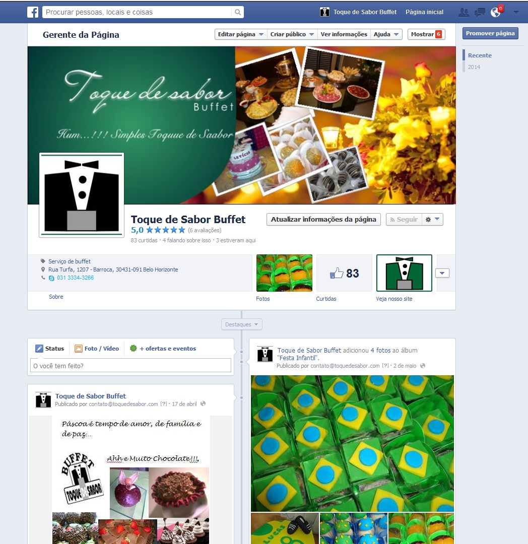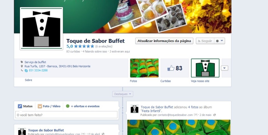 Fanpage Toque de Sabor Buffet e Site completo.